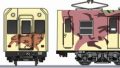1960年と1962年に導入された福井鉄道の連接式電車です。法的な制約から編成長が30mに抑えられています。1999年頃に登場したLoftの全面ラッピングです。