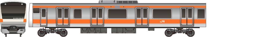 2006年に導入された首都圏用の通勤型電車です。すでに大量投入されているE231系の発展型といえる車両であり、信頼性向上や車体強度のアップといったハードウェア面だけでなく「乗りやすさ」や「ゆとり」といった顧客サービスという面でも大きく進化しています。0番台は中央線快速用に導入された車両です。駅間距離が短いため加速・減速性能を高く設定している反面、営業最高速度100km/hに留まっています。ラインカラーはオレンジ。