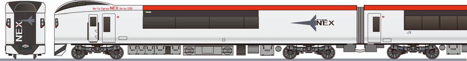 JR東日本の成田空港アクセス特急です。側面や前面には飛行機と「N'EX」のロゴマークが描かれています。