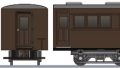 1913年に鉄道院が製造した2等座席と食堂の木造3軸ボギー客車です。1967年からは三菱大夕張鉄道で旅客輸送用に運用されていました。日本で最後の3軸ボギー客車として知られています。