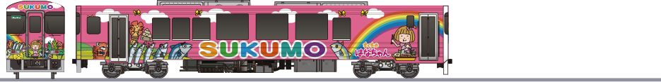 1988年に投入された気動車です。2012年、沿線の7つの自治体のラッピング車となりました。